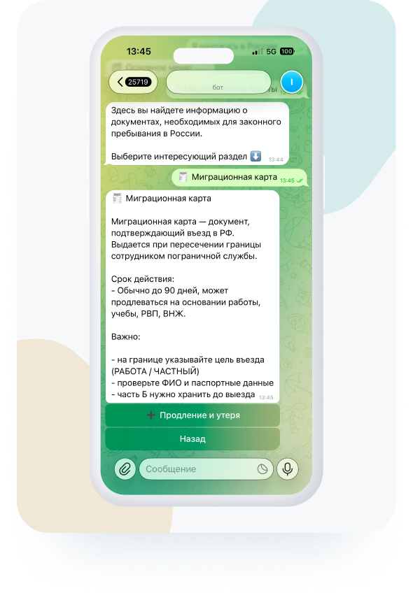 Бот помогает иностранным гражданам разобраться с основными вопросами жизни и пребывания в РФ.